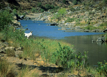 Unverhoffte Be-gegnung am Vas-cao, dem Grenz-fluss zum Alentejo. Diese Idylle aus Mensch - Tier - Natur kann nicht geplant und in kei-nem Reiseführer aufgefunden wer-den. Doch respekt-volle Ausflüge ins Landesinnere sind für Menschen, die im Algarve sein wollen, stets tief befriedigend.